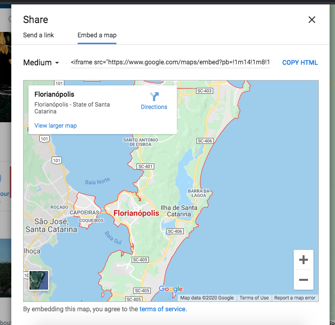 Para isso, o Google Maps disponibiliza um código pronto para incorporar em páginas de código HTML.